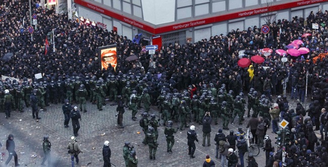 Almanya'nın Hamburg kentinde haftalardır kaos hüküm sürüyor. 21 Aralık'ta başlayan ve dünya kamuoyundan özenle gizlenmeye çalışılan kargaşada eylemciler ile güvenlik güçleri arasında meydana gelen çatışmaların ardından, bu hafta yeniden polise saldırıldığı gerekçesiyle, kentin bazı semtleri 'tehlike bölgesi' ilan edildi. Hristiyanların Noel haftasında sol görüşlü eylemcilerin tanınmış kültür merkezi Rote Flora'yı kapatma girişimine tepki göstermesi ve Hamburg makamlarının mültecilere yaptığı uygulamalar nedeniyle patlak veren haklı tepkiler sırasında polis terörü sebebiyle 500 eylemci yaralanmıştı.