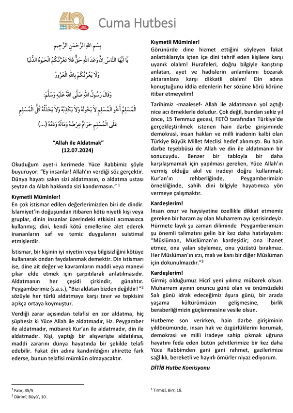 FETÖ'cü dernek yetkilileri, hutbenin Almanya Ceza Kanunu’nun 130. maddesi kapsamında nefret suçu oluşturduğu iddiasını atarak halkı kin ve düşmanlığa tahrik suçu teşkil ettiğini ileri sürdü. Dernek, bu tür nefret söylemlerine karşı Almanya’da hukukun üstünlüğünü ve ‘toplumsal barışı’ korumak adına mücadelesini sürdüreceğini ifade ederek Türk toplumunun temel bileşenlerinden olan Diyanet İşleri Başkanlığını resmen Almanya'ya şikayet etti.