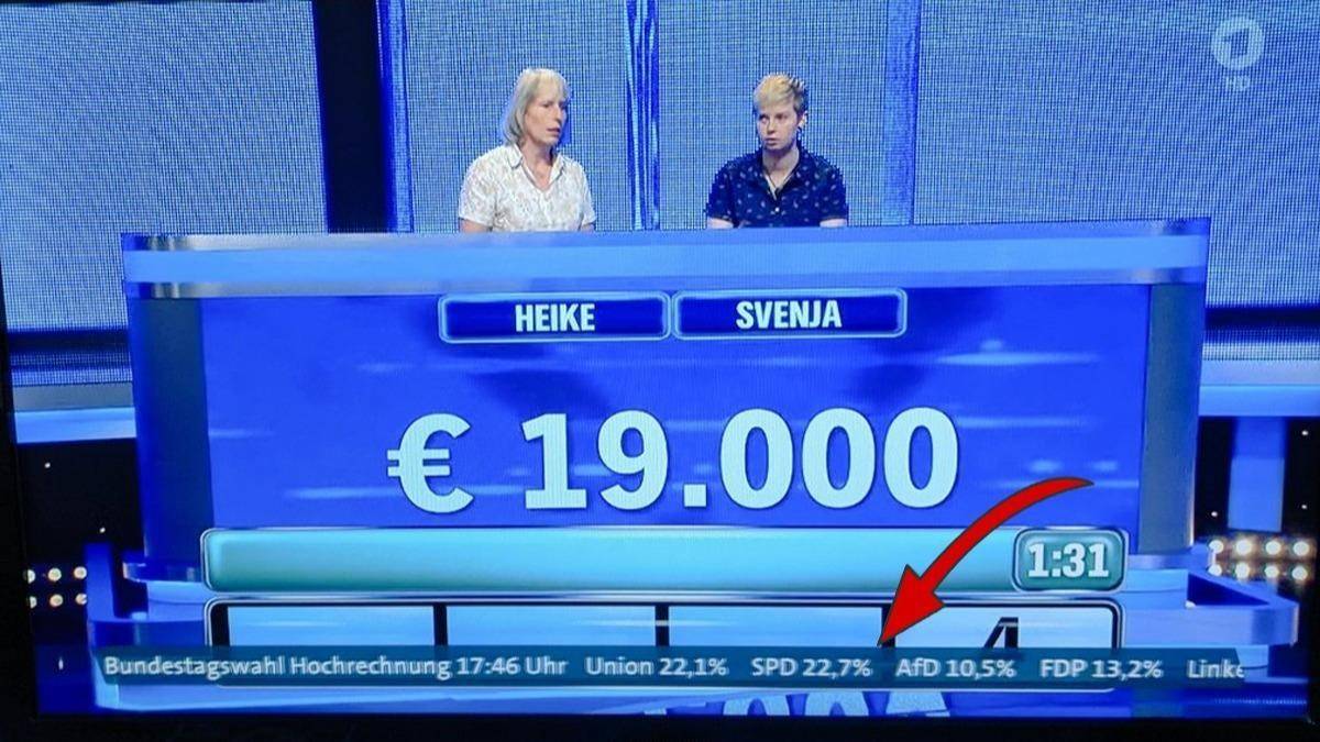 Alman televizyon kanalı ARD yayınında, henüz gerçekleşmemiş olan tarihi seçimin öngörülen sonuçlarını yayınlandı.