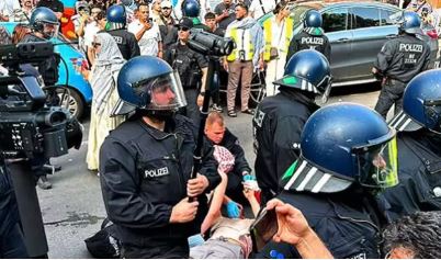 Almanya'da Filistin'e destek için düzenlenen gösteriye Alman polisi sert müdahalede bulundu.