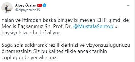 Şentop'un CHP tarafından hedefe konulmasına tepki gösteren Alpay Özalan, sosyal medyada hesabından paylaşımda bulundu.