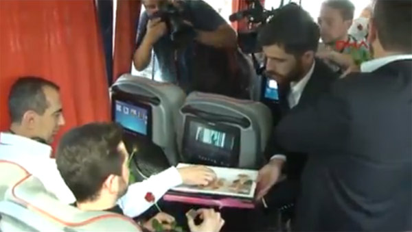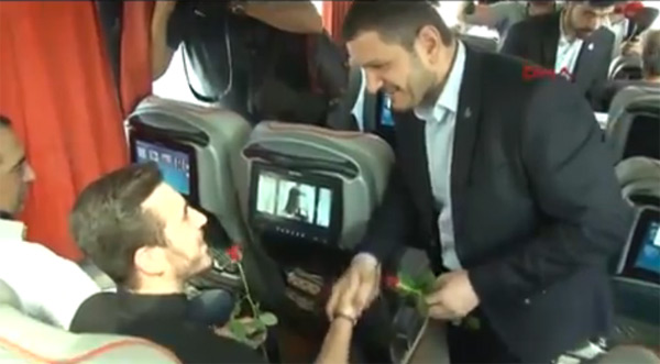 İstanbul'daki otogara giden Alperen Ocakları üyeleri, doğu illerine giden otobüsleri durdurup yolculara gül ve lokum dağıttı.