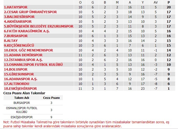 TFF 1. Lig 11. hafta fikstürü