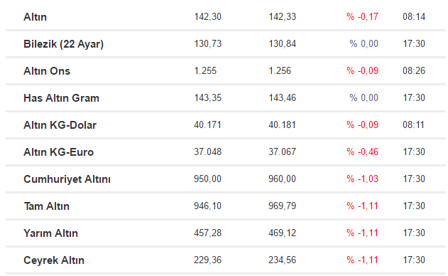 Altın fiyatları dip yaptı. Son dönemin en düşük seviyelerini gören altın fiyatları bu sabah piyasaların açılması ile 142,30 liradan işlem görüyor.