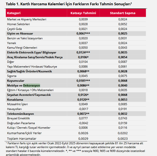 TCMB'nin "Yüksek ve Düşük Altın Oranına Sahip İllerin Seçili Kartlı Harcama Kalemlerinin Gelişimi" başlıklı raporunda vatandaşın altın birikimlerini bozdurarak harcamaya yöneldiği, bunun bazı sektörlerde artan talep nedeniyle fiyatları yukarı çektiği vurgulandı.