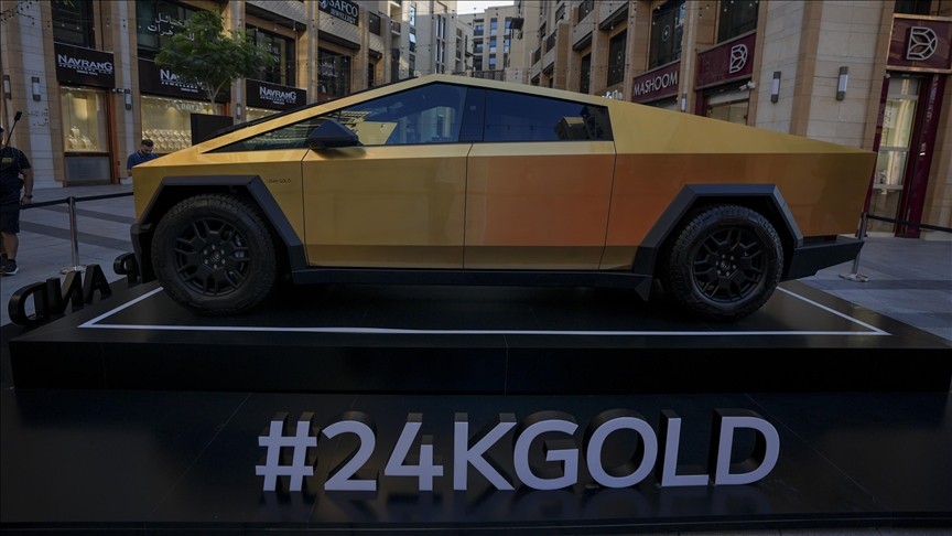 Öte yandan çarşının dış tarafında sergilenen ve benzeri olmayan 24 ayar altın kaplama Tesla'nın Cybertruck model arabası da turistlerden büyük ilgi görüyor.