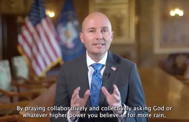 "Zaten daha önce tüm Utahlılardan uzun duşlardan kaçınarak, sızdıran muslukları tamir ederek ve az suya uygun peyzajlar ekerek su tasarrufu yapmalarını istedim. Ancak korkarım bu çabalar tek başına bizi korumaya yetmeyecek. Daha fazla yağmura ihtiyacımız var ve hem de buna şimdi ihtiyacımız var. İlahi bir müdahaleye ihtiyacımız var. Bu yüzden tüm inanç mensubu Utah halkından 4-6 Haziran arasındaki hafta sonu yağmur duasında bana katılmalarını istiyorum."