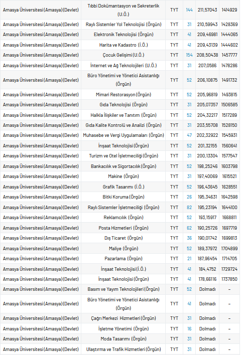 Amasya Üniversitesi 2 yıllık taban puanları 2021, yüzdelik dilimleri ve kontenjan sayıları kaçtır?