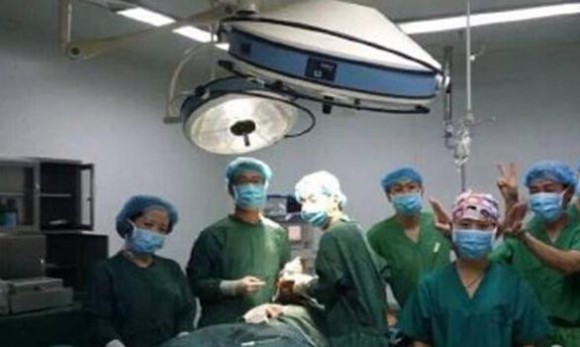 Ameliyat esnasında işlerine ara veren sağlık ekibinin çektirdiği fotoğraflar internete yüklenince ekip Çin’de tepkilerin hedefi haline geldi.