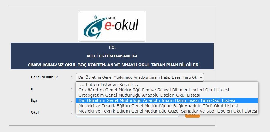 Eğitim hayatlarına Anadolu İmam Hatip Lisesi’nde devam etmek isteyenler okul puanlarını ve yüzdelik dilimleri merak ediyor. Tercih işlemleri 20-29 Temmuz tarihleri arasında yapılacak. Yaşadığınız şehirde bulunan okulların puan yüzdelik ve kontenjan bilgilerini ulaşmak için tıklayınız.
