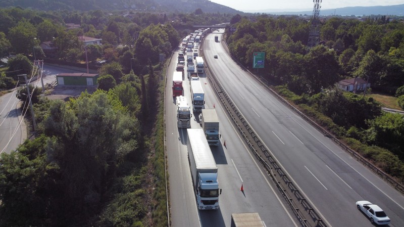 Kaza nedeniyle tek şeritten sağlanan ulaşım, tırların kaldırılmasıyla normale döndü.