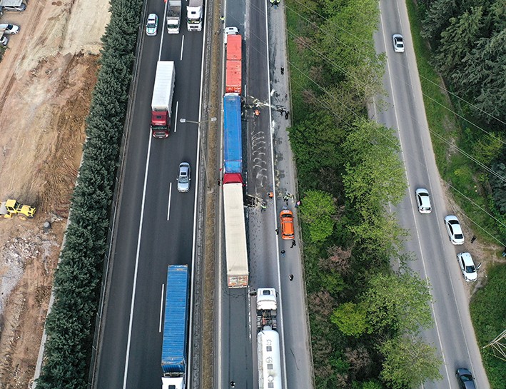 Anadolu Otoyolu'nun Kocaeli geçişinde meydana gelen zincirleme trafik kazası nedeniyle Ankara istikametinde ulaşım aksadı