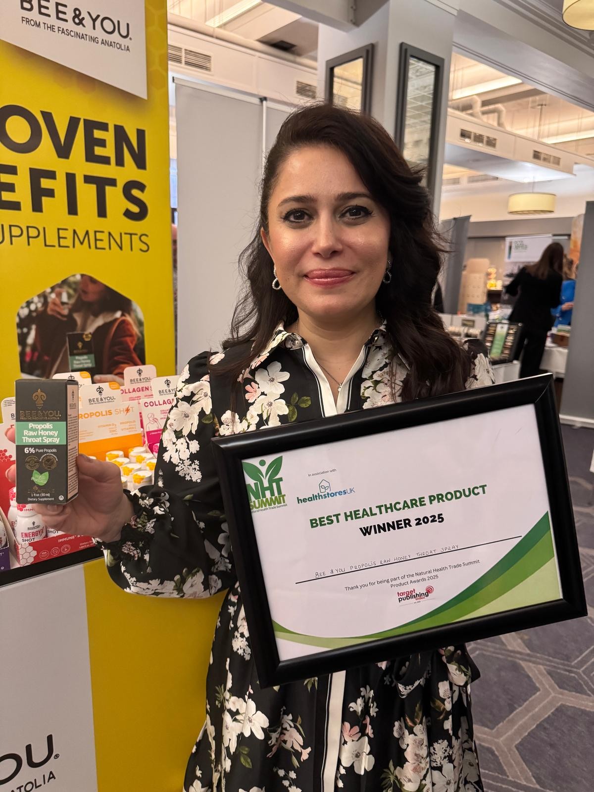 İngiltere’de düzenlenen Natural Health Trade Summit kapsamında, BEE&YOU Propolisli Boğaz Spreyi, “En İyi Sağlık Ürünü” kategorisinde birincilik ödülüne layık görüldü. Anadolu propolisi, ham bal ve mentol içeren özel formülüyle dikkat çeken ürün; ağız hijyenini desteklemeye ve ağız kokusunu gidermeye yardımcı oluyor. Doğal içeriğiyle ferahlatıcı bir etki sunan sprey, hem çocuklar hem de yetişkinler için günlük kullanıma uygun pratik bir alternatif olarak öne çıkıyor.