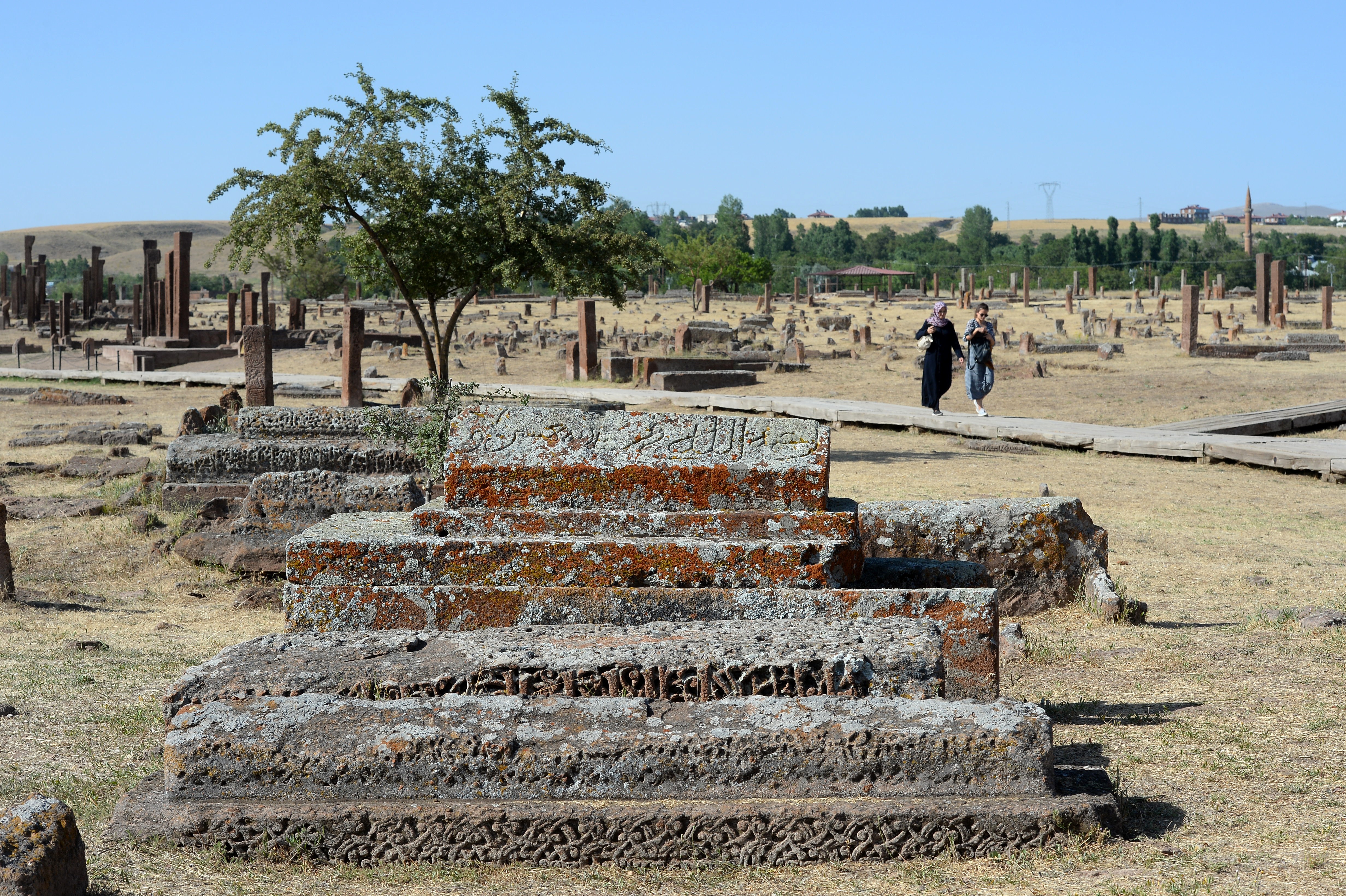 210 dönümde kurulu Ahlat Selçuklu Meydan Mezarlığı'ndaki 8 bin 200 mezar taşı ve üzerilerindeki yazılar, kabartmalar ile oymalar, ziyaretçilerin ilgisini çekiyor.