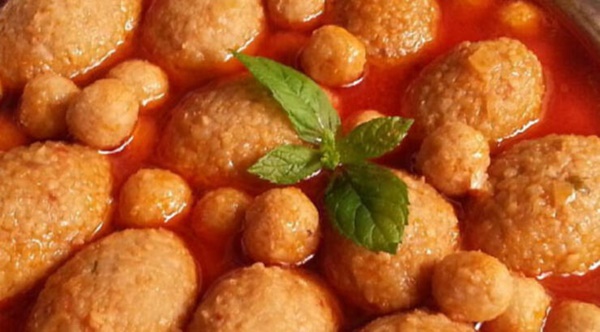 Kıymalı harçtan bir yemek kaşığı doldurup ağzını kapatın. Bu işlemi yaparken arada elinizi ıslatın. Bu şekilde köftelerimizi hazırlayalım. Hamurun bir parçasına da nohuttan büyük olacak şekilde toplar yapalım. Tencereye sıvıyağ koyalım eti kuşbaşı doğrayalım ve yağda kavuralım salçasını ilave edip devam kavuralım, sıcak su ilave edelim ve düdüklü tencerenin kapağını kapatalım yaklaşık 10-15 dakika etimizi haşlayalım. Nohutu ister bir gece önceden ıslatıp et ile birlikte haşlayın, isterseniz konserve kullanın tercihi size kalmış. Haşlanan etimizin içine nohutları ilave edelim orta ateşte 3-5 dakika kaynamaya bırakalım. Küçük toplar ekleyip yaklaşık 3 dakika kaynatalım. En son olarak içli köfteyi de ilave edelim ve yaklaşık 5-8 dakika orta ateşte kaynatalım. Pişen çorbayı ocaktan alıp sıcak servis edelim.