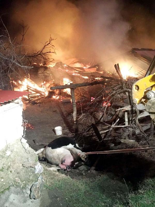 Olay, dün gece Boynuyoğunlu Mahallesi'nde meydana geldi. Hulusi Çiftçi'nin eşi ve oğluyla akrabalarını ziyaret ettiği sırada tek katlı evde bilinmeyen nedenle yangın çıktı. Kısa sürede her yeri saran alevlere, mahalle sakinlerinin ihbarıyla gelen itfaiye ekipleri müdahale etti. Ekiplerin yaklaşık bir saat süren çalışmasının ardından yangın söndürülürken, ev kullanılamaz hale geldi. Evin avlusundaki bir büyükbaş hayvanın da telef olduğu yangının çıkış nedeni araştırılıyor.