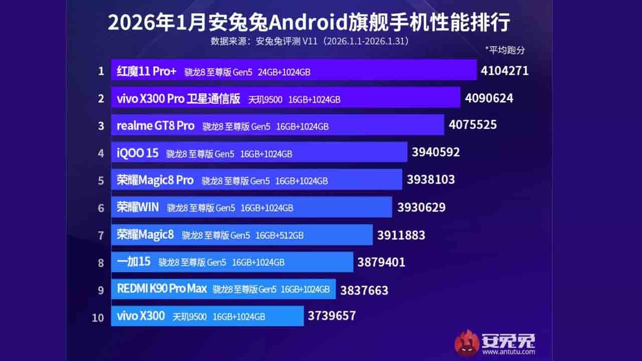 AnTuTu’nun Ocak 2026 verilerine göre hazırladığı performans sıralaması, Android dünyasındaki güç yarışını bir kez daha gözler önüne sererken, zirvenin değişmeyen ismi dikkat çekti.