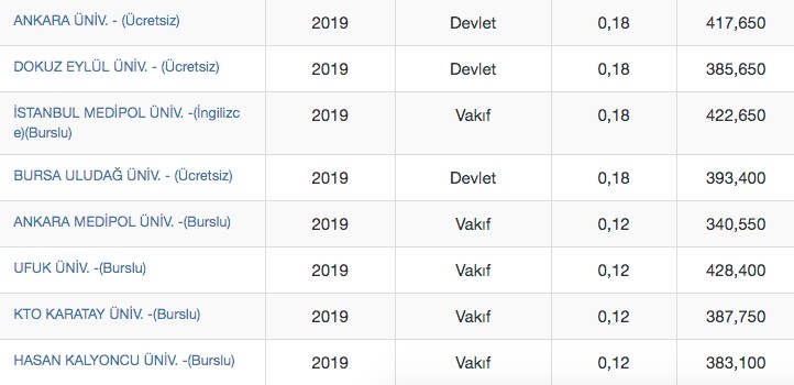 Anestezi önlisans taban puanları 2020 başarı sıralaması