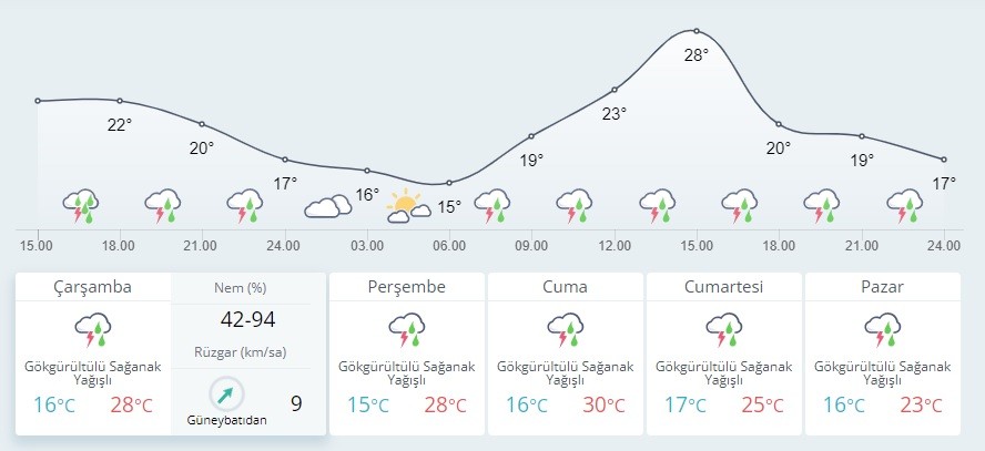 RÜZGAR: Genellikle kuzeyli yönlerden hafif ara sıra orta kuvvette, yağış anında kuvvetli esmesi beklenmektedir.
