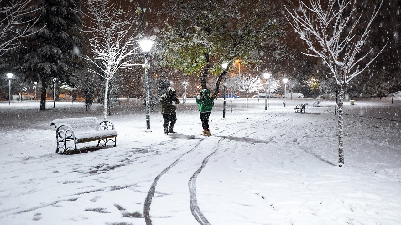 Kent merkezini etkisi altına alan ve bazı bölgelerden zaman zaman yoğunlaşan kar yağışıyla şehrin cazibe merkezi olan parklarda kartpostallık görüntüler oluşturdu.