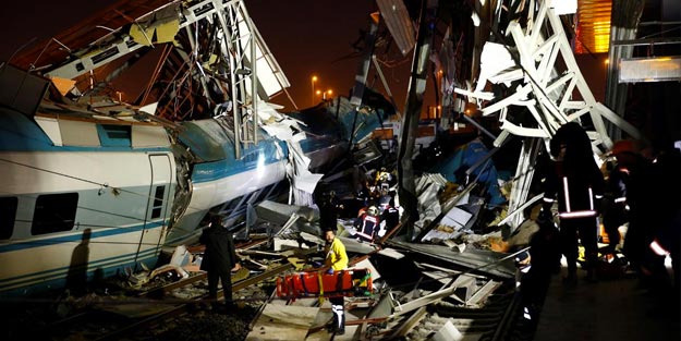 Ankara-Konya seferini yapan Yüksek Hızlı Tren (YHT), Yenimahalle'de Marşandiz istasyonunda yol kontrolüyle görevli kılavuz trene çarptı. Ankara Valisi Vasip Şahin kaza sonucu 43 kişinin yaralandığını 4 kişinin de hayatını kaybettiğini söyledi. Ankara Konya hızlı tren kazası ölenlerin ve yaralananları isimleri önümüzdeki saatlerde açıklanacağını söyledi.