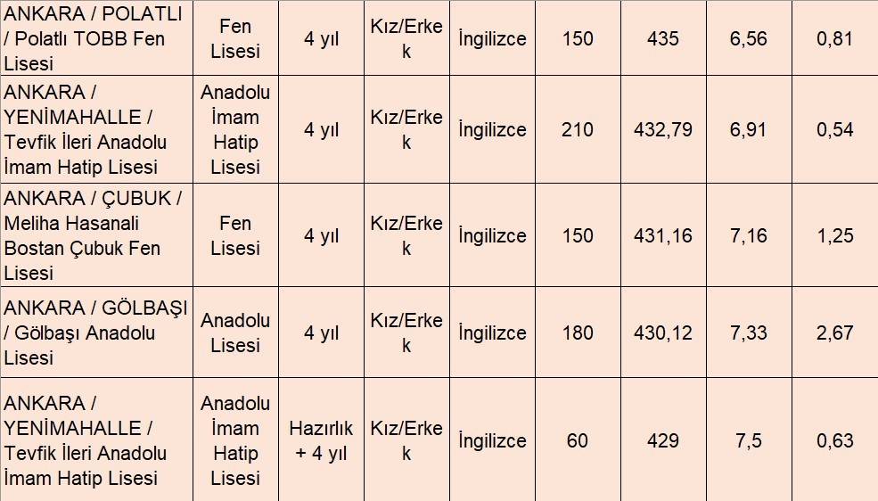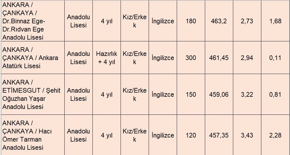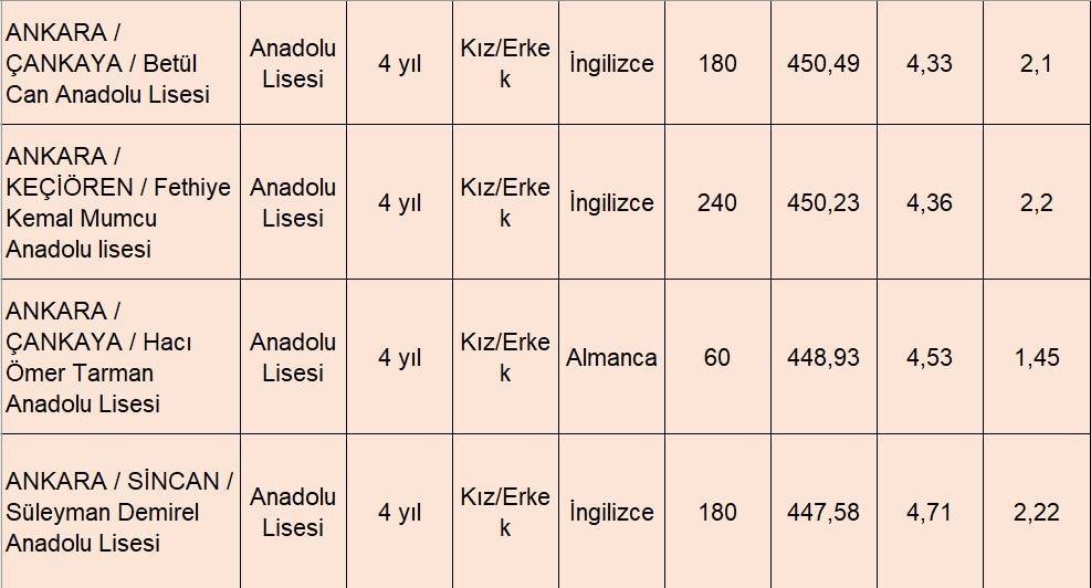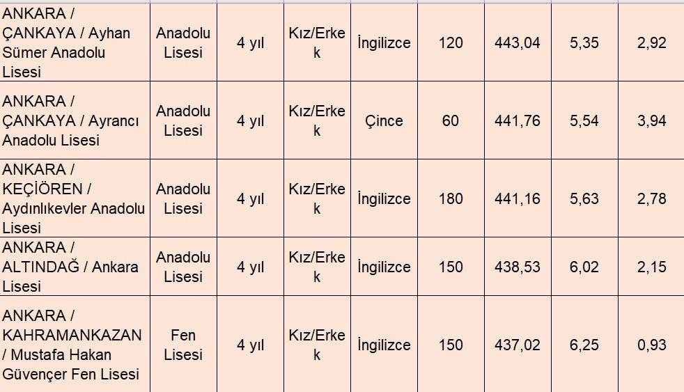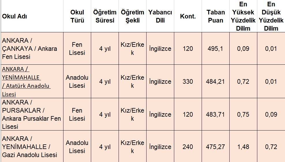 Ankara lise taban puanları Ankara fen lisesi, anadolu lisesi, imam hatip yüzdelik dilimleri 2021