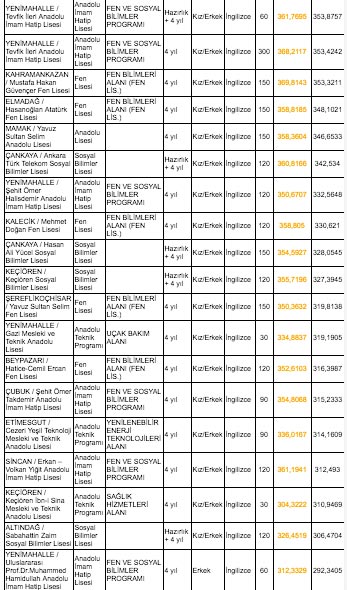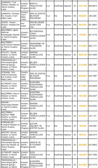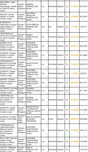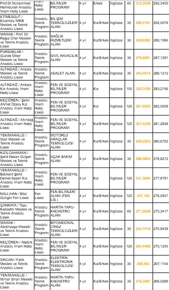 Ankara lise taban puanları