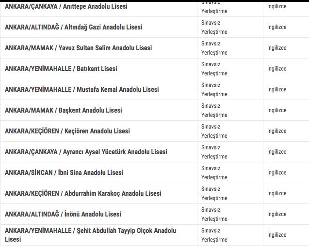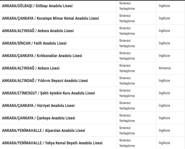 Ankara sınavsız öğrenci alan liseler Ankara'da sınavsız öğrenci alan meslek liseler