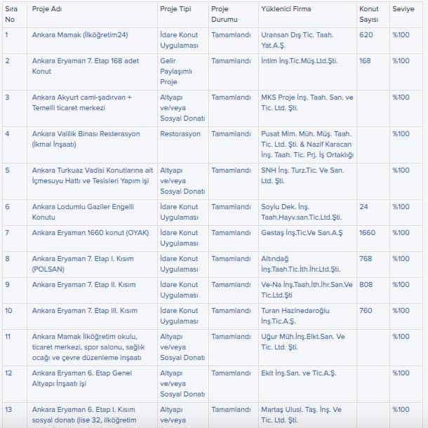 TOKİ’nin Ankara’da satışta olan konutları kurumun web sayfasında yer almakta.