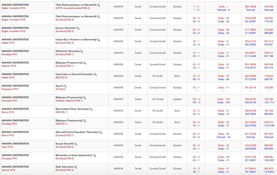 Ankara Üniversitesi taban puanları 2019 YÖK atlas için tıklayınız