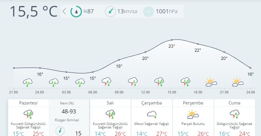 Açıklamada, yağış anında kuvvetli rüzgar ve dolu beklendiğinden ani sel, su baskını, yıldırım, ulaşımda aksamalar gibi olumsuzluklara karşı dikkatli ve tedbirli olunması istendi.