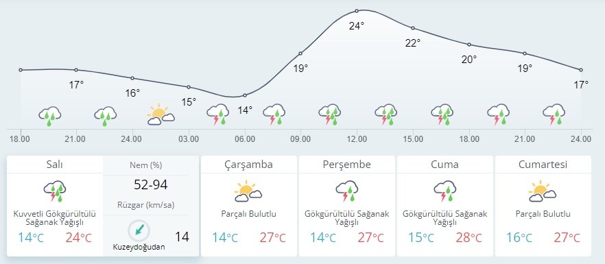 Meteoroloji Genel Müdürlüğünden yapılan açıklamaya göre yarın 11.00'de, yurdun iç kesimlerinde beklenen gök gürültülü sağanağın, İç Anadolu'nun güneyi ve doğusu, Antalya'nın iç kesimleri, Orta ve Doğu Karadeniz'in iç kesimleri ile Doğu Anadolu'nun batısı ve kuzeyinde yerel olarak kuvvetli olması bekleniyor.