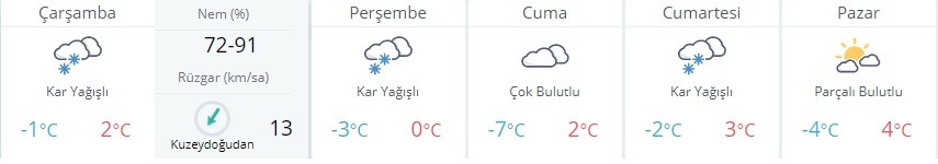 Bu gece ve yarın sabah saatlerinde de kar yağışının etkili olacağı (8-12 santimetre) tahmin ediliyor.