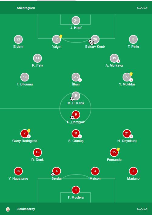 Yeni sezona bomba transferlerle giren Galatasaray, aynen geçtiğimiz sezonda olduğu gibi bu yıl da şampiyon olmanın peşinde olacak. Galatasaray daha sezonun ilk maçında 3 puanı kaparken, bu sezon da şampiyonluk kupasını havaya kaldırmak istiyor. Galatasaray deplasmanda Ankara temsilcisi Ankaragücüsporla Osmanlı Stadı'nda karşı karşıya geldi. Galatasaray daha yolun başındayken 7. dakikada El Kabir'in golüyle Ankaragücü karşısında 1-0 yenilgiye düştü. Galatasaray eşitliği sağlayan golü 21. dakikada Serdar Aziz kaydetti. Eşitliğin sağlanmasından sonra Aslan artık kükremeye devam etti. 30 dakikada Galatasaray atağında Mariano'nun sağ kanattan ortasında Kone, ters bir kafa vuruşuyla topu kendi kalesine gönderdi. Maçta durum Ankaragücü 1-2 Galatasaray. İkinci yarının son demlerinde adeta tarih yazan Galatasaray, 90+2'de Eren Derdiyok ile maçın skorunu 3-1 yaptı. Böylelikle Galatasaray, Ankaragücü maçından 3-1 üstünlükle ayrılırken 3 puanı da cebinde getirdi.