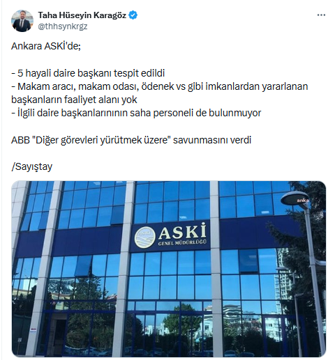 Gazeteci Taha Hüseyin Karagöz, Sayıştay tarafından ASKİ’de ortaya çıkarılan rezaleti paylaştı.