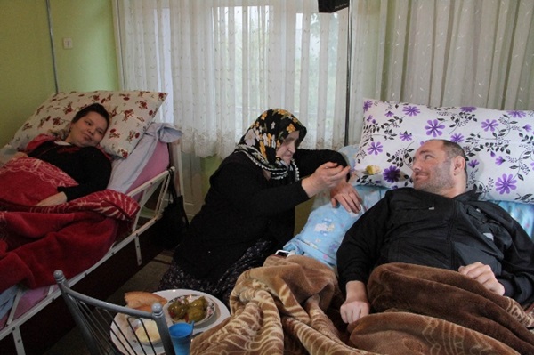Çocukları yatalak olalı 26 sene olduğunu ifade eden anne Arslan, “Kas hastalığı diye başladı. Hastalık ilk olarak oğlum Turan’da oldu, daha sonra Nuran’da oldu, daha sonra da Nurhan’da oldu. Çocuklarıma bakmaktan dolayı hiç yorulmuyorum. Gece uykum gelmiyor, gündüz de hiç yerimde duramıyorum. Geceleri devamlı onları kontrol ediyorum. Kendileri hiçbir ihtiyaçlarını gideremiyor. Üzerleri açık kalsa örtemiyorlar. Benim çocuklarım bana çok kıymetli. Çocuklarım bana bugüne kadar hiç ‘anam’ demediler, hep ‘anacığım’ dediler. O kadar ağrıları olduğu halde bile ‘anacığım neredesin, döndür bizi’ diye çağırdılar. Benim gözlerime hiç uyku girmiyor. Kalktığım zaman dedikleri her şeyi yaparım. Çocuklarım bana ‘anne’ dedikleri zaman dünyalar benim oluyor” diye konuştu.