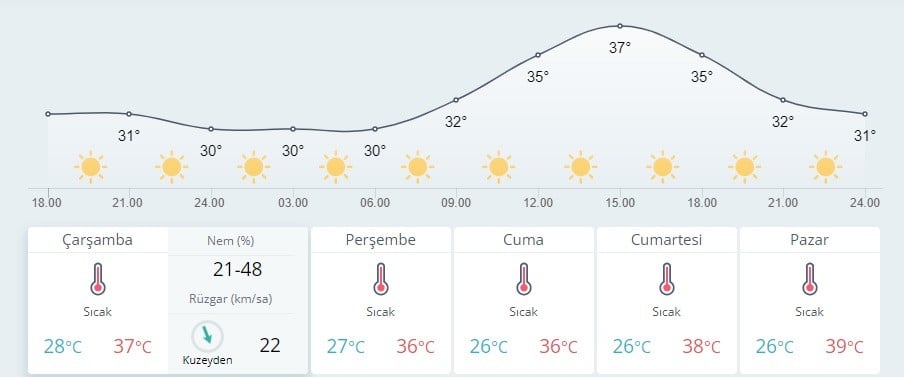 Nem oranlarının ise düşük seyredeceğini ifade eden Gültekin, sıcak hava ve düşük nem nedeniyle vatandaşların dikkatli olmaları gerektiğini kaydetti.