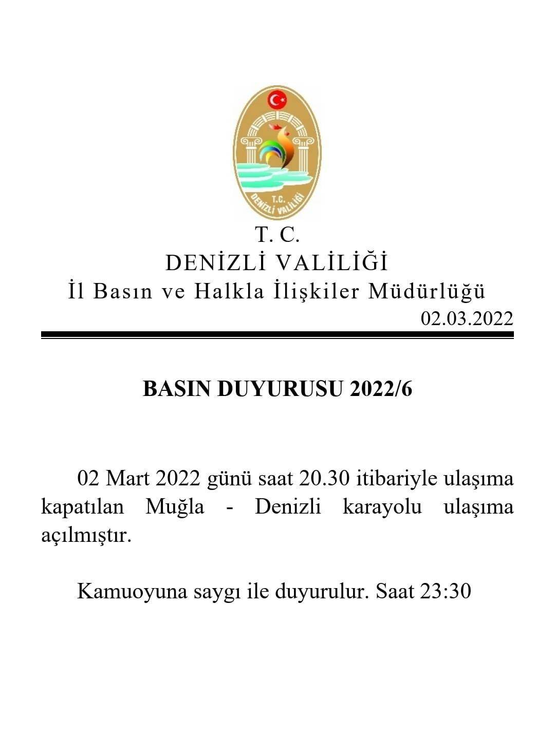 Trafik polisleri Cankurtaran rampasında araçların çıkışına kontrollü olarak izin verirken, Kale ilçesi istikametinde bulunan Muğla karayolu 3 saatin sonunda ulaşıma açıldı. Hava durumuna göre araçların kontrollü geçişine izin verildiği belirtildi.