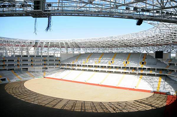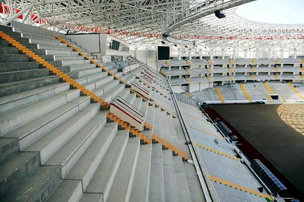 Antalya'da geçen yıl haziran ayında temeli atılan ve 96 dönümlük arazide yer alan 33 bin kişilik stadyumda inşaat çalışması sona yaklaştı. Tam daire şekliyle antik kentlerdeki arena görünümünü andıran statta çalışmaların yüzde 95'inin tamamlandığı belirtildi.