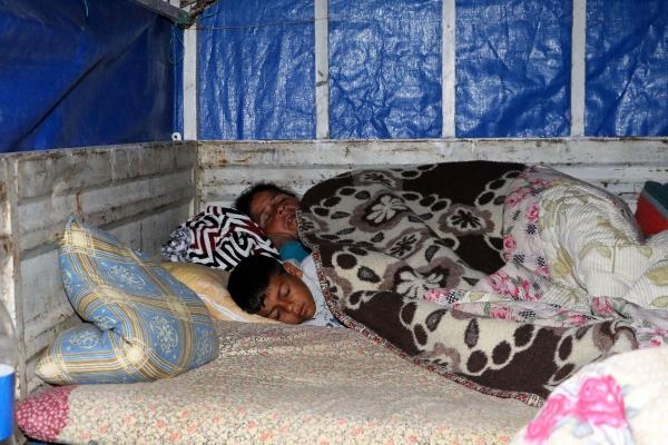 Ancak uygun yer bulamayan 8 kişilik aile, Finike'de hem günlük işlerinde hem de nakliyecilikte kullandıkları kamyonetin kasasında yatmaya başladı.