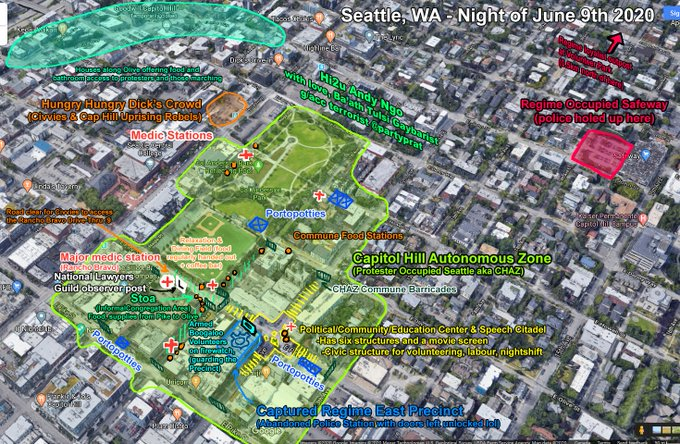 Silahlı sol kanat (Antifa) eylemcileri Capitol Hill Özerk Bölgesi'nde sokaklara hakim olduklarını iddia ettiler ve bir mahallenin büyük bir bölümünde alternatif bir siyasi otorite kurdular. Bununla da yetinmeyen Antifa, hükümet kurduklarını söyleyerek, bölgede bulunan basın mensuplarını dışarı çıkardı.