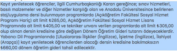 AÖF kayıt yenileme ücreti ne kadar?