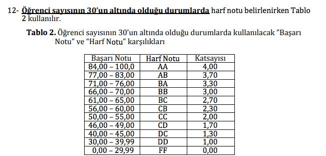 Anadolu Üniversitesi Açıköğretim (AÖF) İktisat ve İşletme Fakülteleri Öğrenci Değerlendirme Sistemi Esaslarının 9.maddesinde "(Değişik:Senato‒3/1/2017‒1/10; Değişik: Senato‒18/9/2018‒7/4; Değişik: Senato‒27/11/2019‒15/13; Değişik: Senato‒11/3/2020‒2/7) Merkezî Açıköğretim ve Uzaktan Öğretim Programlarında, ders bazında "Başarı Notu" alt sınırı uygulanır. "Başarı Notu" alt sınır değeri, laboratuvar dersleri, uygulama dersleri ve İngilizce Öğretmenliği Lisans Programında öğretim dili İngilizce olan dersler dışında 35'tir” denilmektedir.