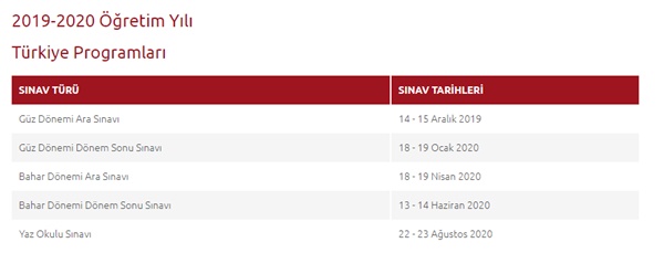 2019-2020 Öğretim Yılı AÖF sınav takvimi