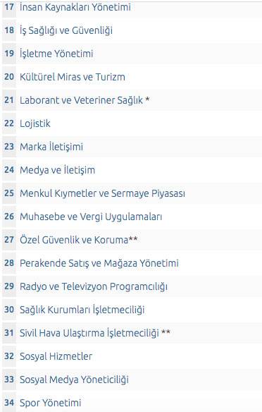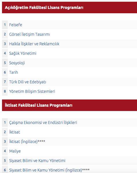 AÖF ikinci üniversite önlisans lisans bölümleri