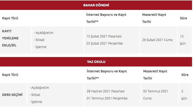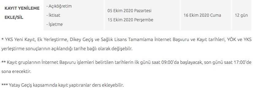 Açıköğretim AÖF kayıt yenileme ne zaman? İşte Açıköğretim, İktisat ve İşletme Fakülteleri 2020-2021 öğretim yılı internet başvuru, kayıt, kayıt yenileme/ekle-sil tarihlerine ilişkin haberin detayları.