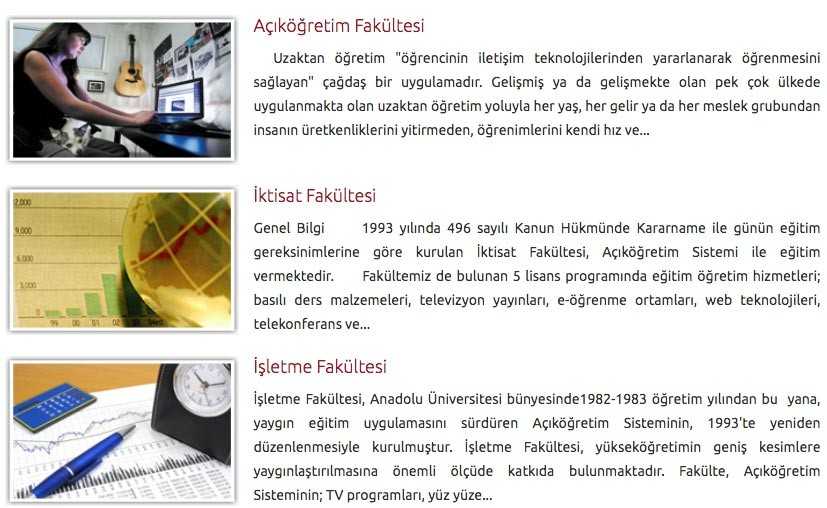 Açıköğretim Fakültesi (AÖ) İktisat Fakültesinde İktisat, Maliye, Kamu Yönetimi, Çalışma Ekonomisi ve Endüstri İlişkileri, Uluslararası İlişkiler bölümleri mevcuttur.