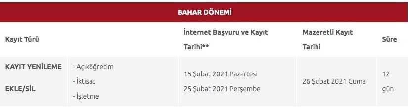 AÖF kayıt yenileme ne zaman?