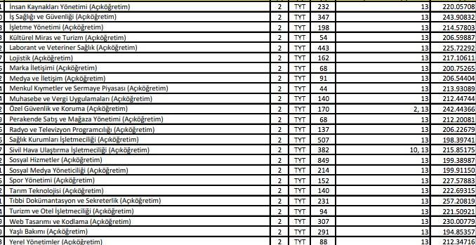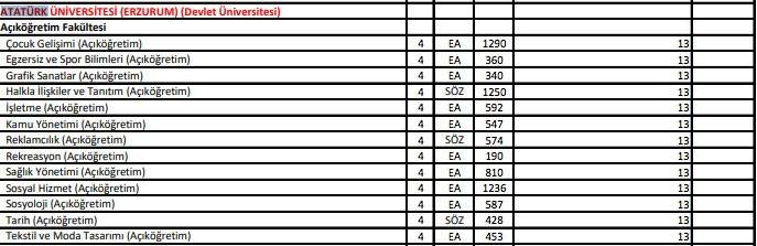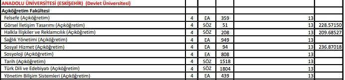 AÖF YKS 2 tercih bölümleri! Açık öğretim fakültesi AÖF ATA YKS 2. ek yerleştirme kontenjanlar 2021 listesi