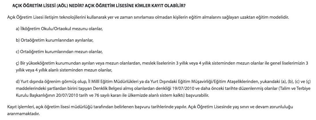 AÖL kayıt ve kayıt yenileme tarihleri MEB